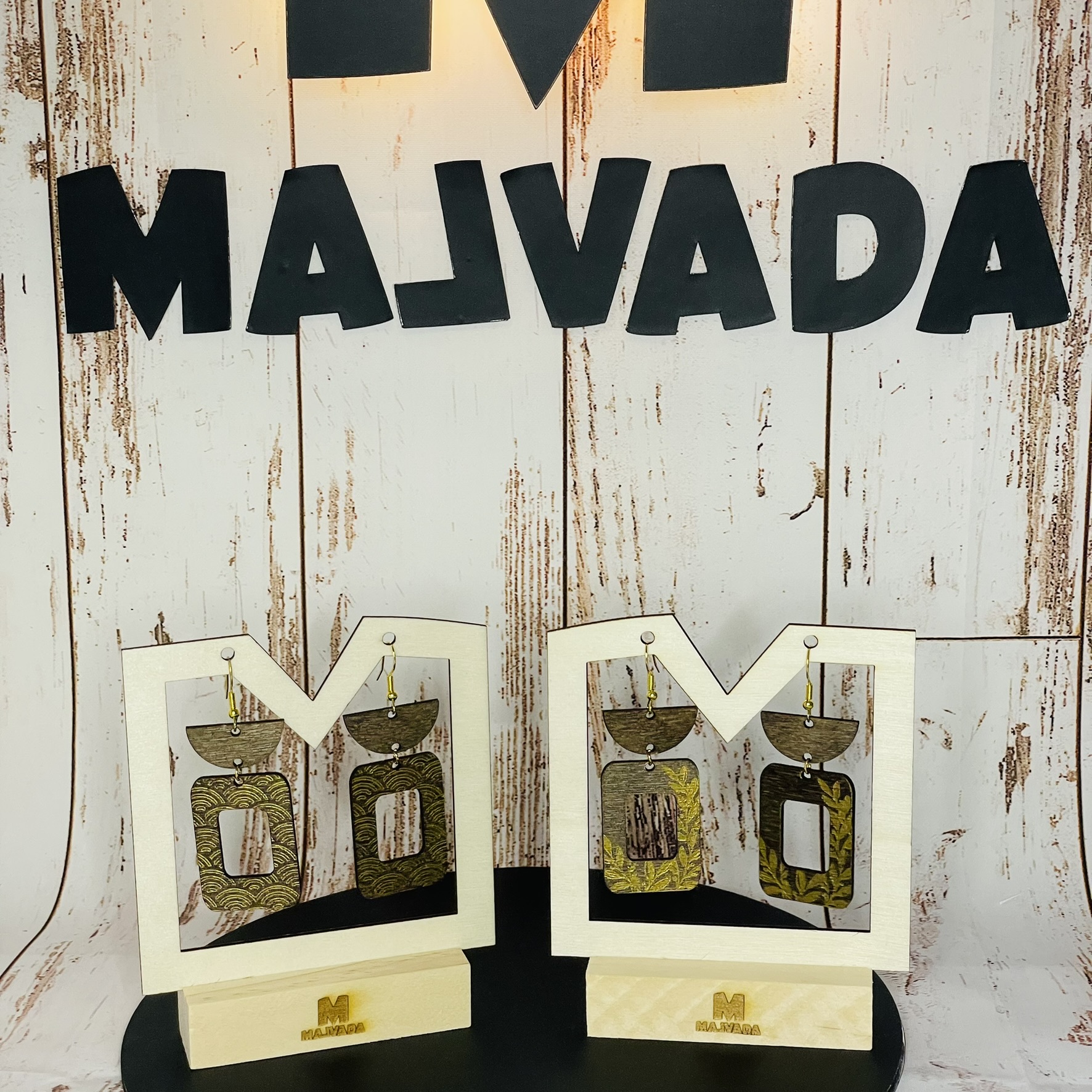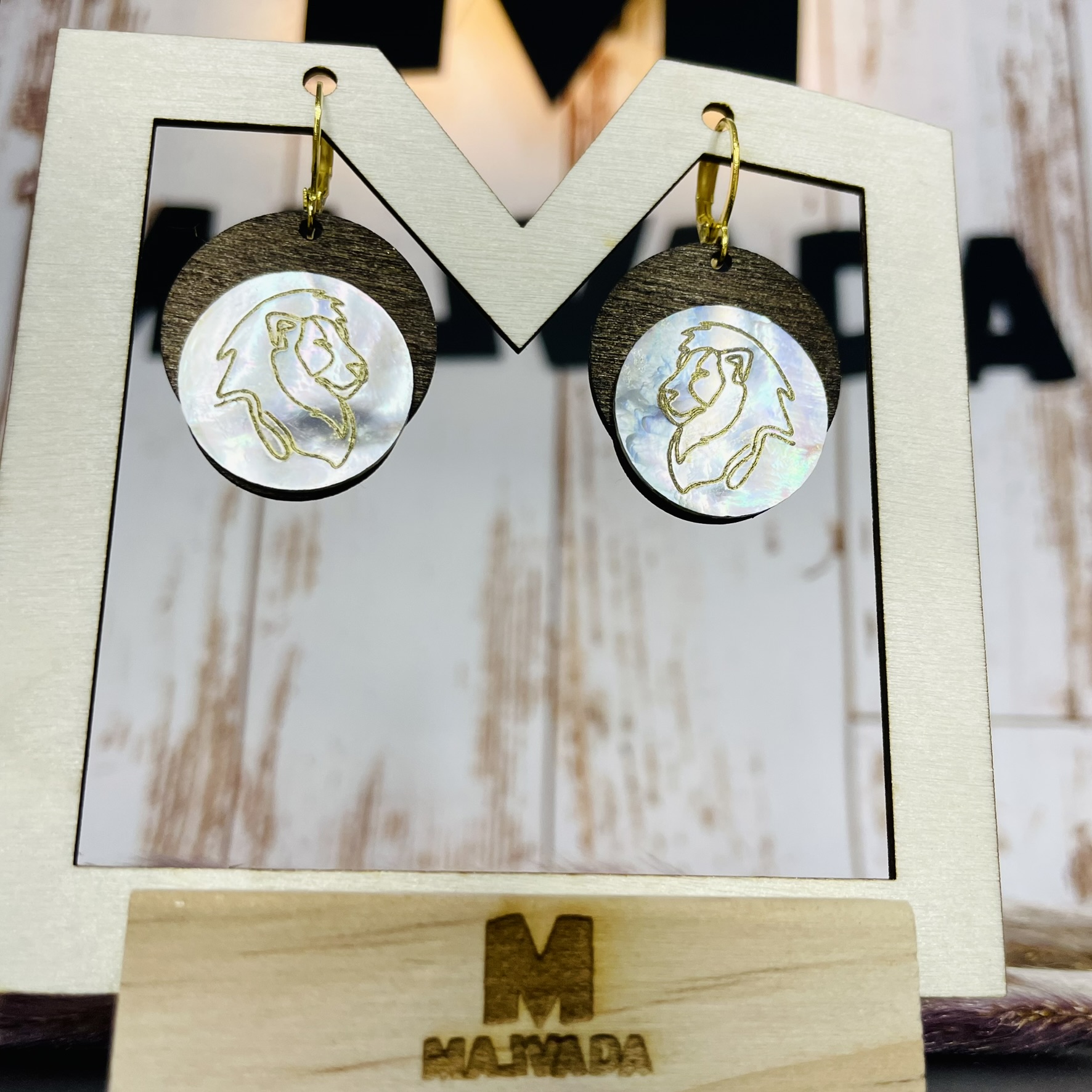 Brincos Madeira e folha de ouro